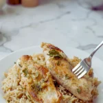 Garlic butter chicken and rice is one of those weeknight dinners I keep coming back to when I want something genuinely satisfying without spending an hour in the kitchen. Tender chicken tenders seasoned and seared until golden, then finished in a rich garlic butter sauce over Parmesan-laced rice cooked right in the same pan. The cooking wine gives the rice this subtle depth that’s hard to explain but easy to notice. I first made this on a cold Tuesday in January when I had chicken tenders in the fridge and no desire to do anything complicated, and it’s been on regular rotation since.
